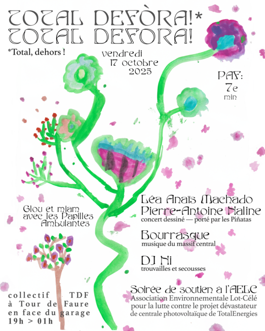 TOTAL DEFÒRA ! Concerts et soutien à l'AELC. Par le collectif TDF, à Tour de Faure.