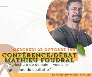 Mercredi 22 Octobre prochain rendez vous pour nos jolies soirees conférences/débats cette fois ci en presence de MATHIEU FOUDRAL qui nous parlera de l'agriculture de demain