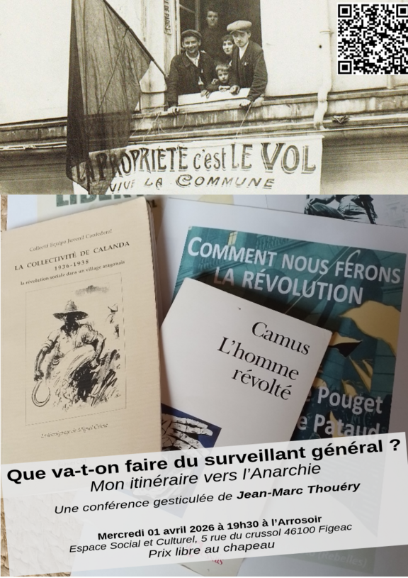 Les Anarchistes font depuis longtemps des propositions claires pour une autre organisation sociale, une société qui allie liberté individuelle et justice sociale. J'ai rencontré les Anarchistes il y a quelques décennies, et il faut dire que ma vie n'eut pas été la même sans cette rencontre...